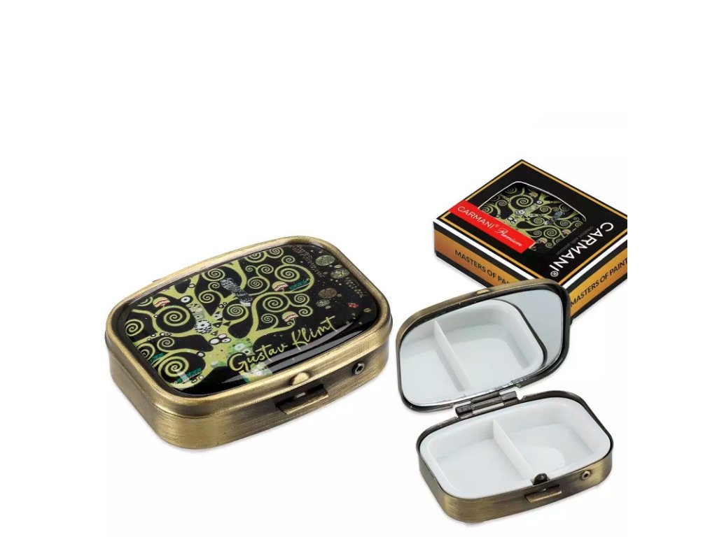 2194 Carmani - Obdélníková krabička na tablety LÉKOVKA se zrcátkem, G. Klimt, Strom života