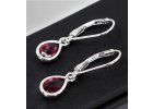 Stříbrné náušnice Kinka (Ag 925), rubínové zirkony, rhodiované, zapínání na klapku, elegantní design, dárkové balení zdarma.