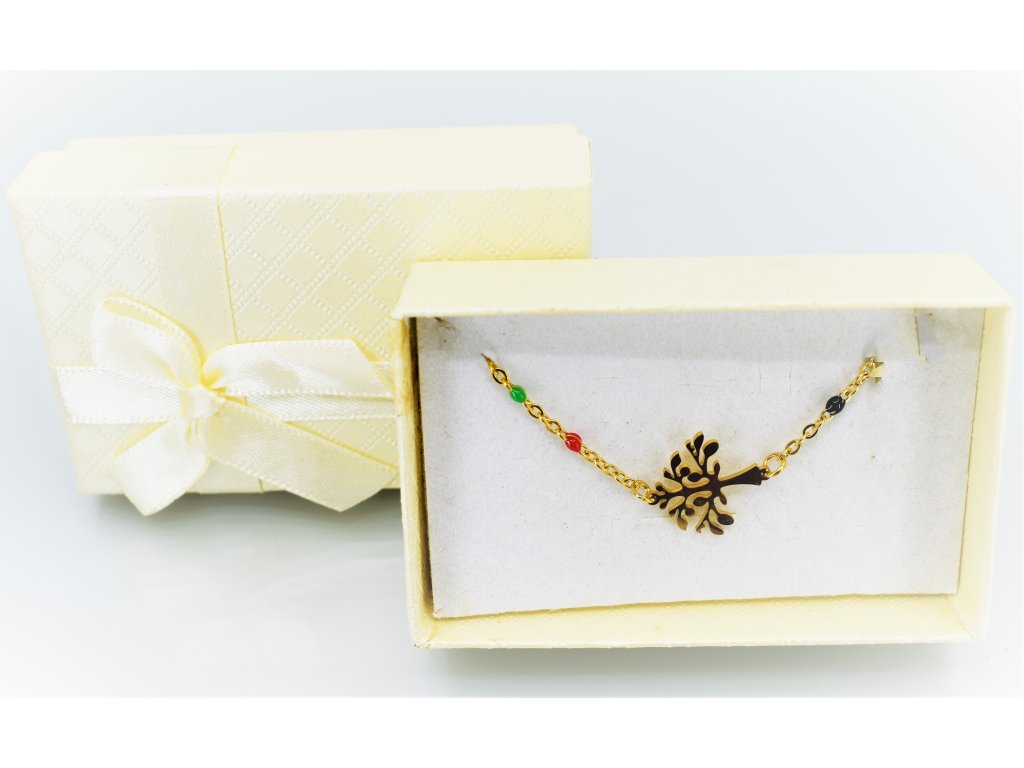 Pozlacený náramek Gero je výjimečně jemný doplněk s hlubokým významem. Dominantou tohoto elegantního šperku je precizně vyřezaný motiv stromu života – symbolu síly, rovnováhy a obnovy. Náramek je zhotoven z nejkvalitnější chirurgické oceli 316L s povrchovou úpravou v barvě žlutého zlata, která mu dodává luxusní vzhled a výjimečný lesk. Jemné barevné korálky působí hravě a přitom vkusně. Lehký, odolný a vhodný pro každodenní nošení i slavnostní příležitosti.