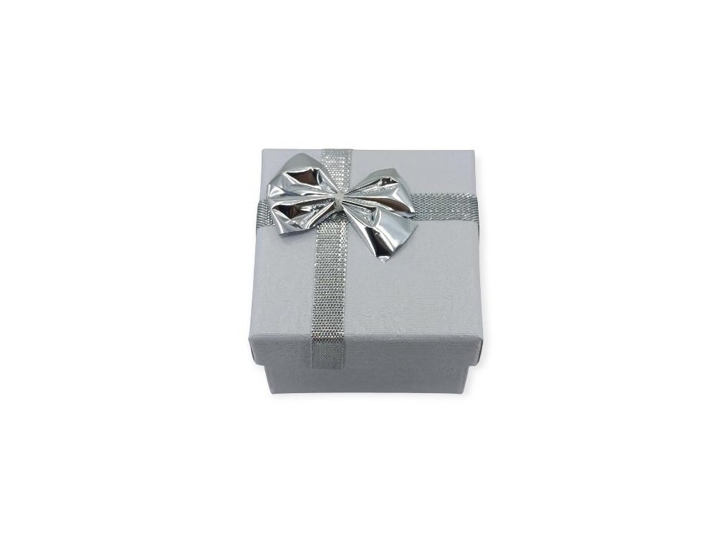 Luxusní bílá krabička se stříbrnou mašlí rozzáří každý darovaný šperk – ideální na prsten či náušnice.