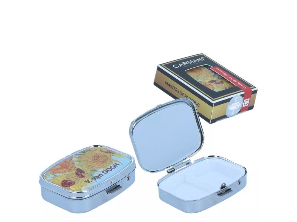 - Máte rádi originální doplňky nebo hledáte dárek pro své blízké? Musíte-li u sebe nosit léky vsaďte na stylovou a praktickou lékovku. Báječný a vkusný dárek s motivem obrazu Vincent van Gogh " Slunečnice", který ocení každý milovník umění. Máte-li více drobností a velkou kabelku vybavte se také kosmetickou taštičkou s tímto krásným motivem od Alfonse Muchy. Mějte vše důležité uspořádané a stále při sobě. pokud vás přepadne třeba migréna. Nebo pastilky proti kašli jako první pomoc při nachlazení či vitamíny. V případě že užívat nějaké léky pravidelně, pak budete tuto nepříjemnou povinnost možná lépe snášet díky krásnému a elegantnímu provedení lékovky s uměním.