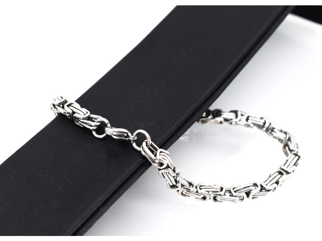 Pevný pánský náramek v královské vazbě z chirurgické oceli. Elegantní lesk, délka 21 cm. Včetně dárkové kazetky.