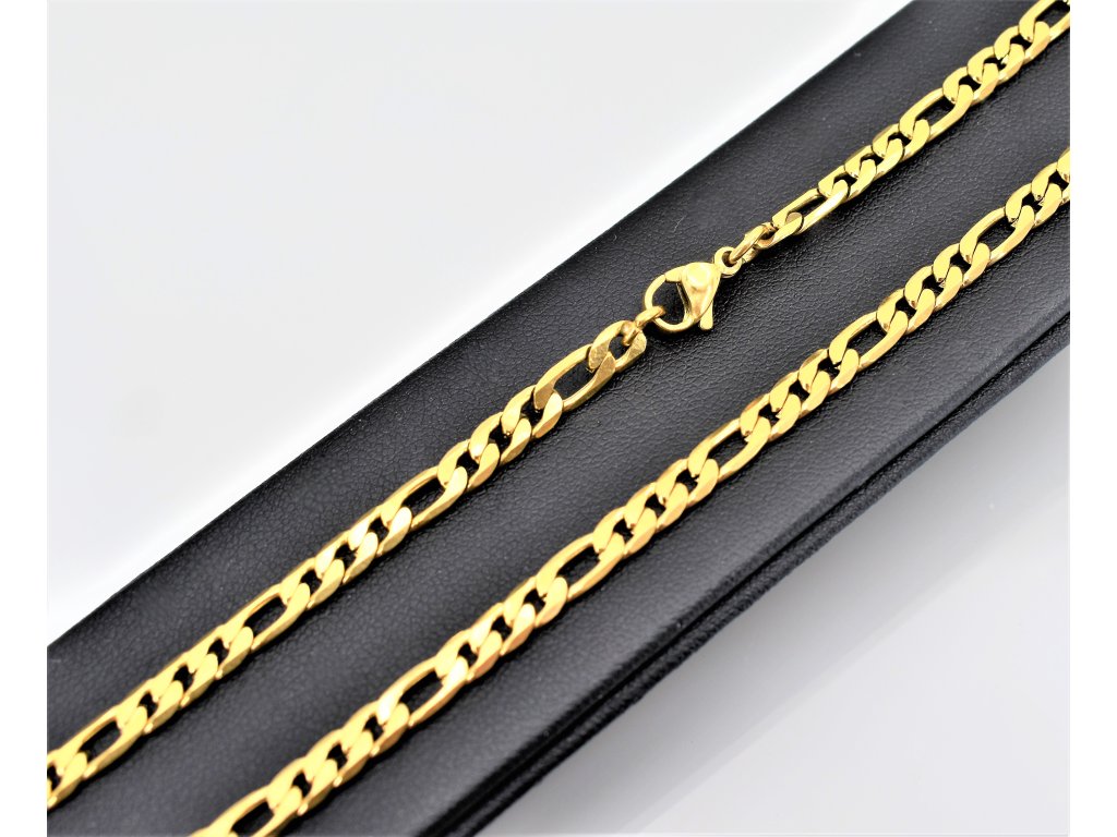 Pozlacený pánský řetízek Figaro z chirurgické oceli 316L. Elegantní vzhled, dlouhá životnost, kazetka zdarma.