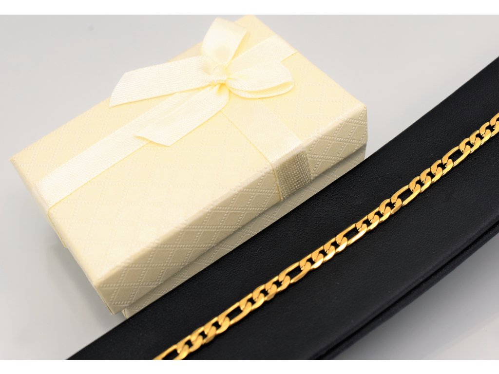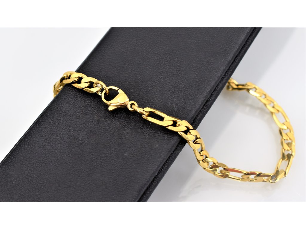 Elegantní pánský náramek z chirurgické oceli s figaro vazbou ve zlaté barvě, délka 21 cm.