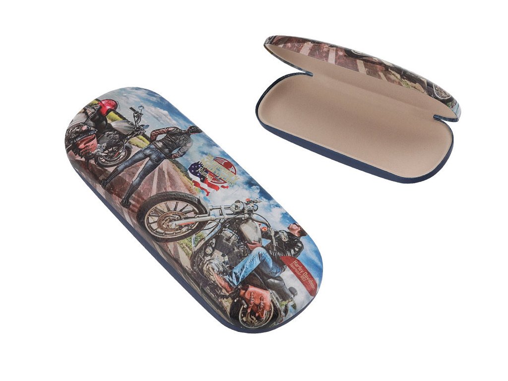 Stylové pevné pouzdro Carmani na brýle s motivem motorky. Luxusní dárek pro muže milující jízdu na motorce.