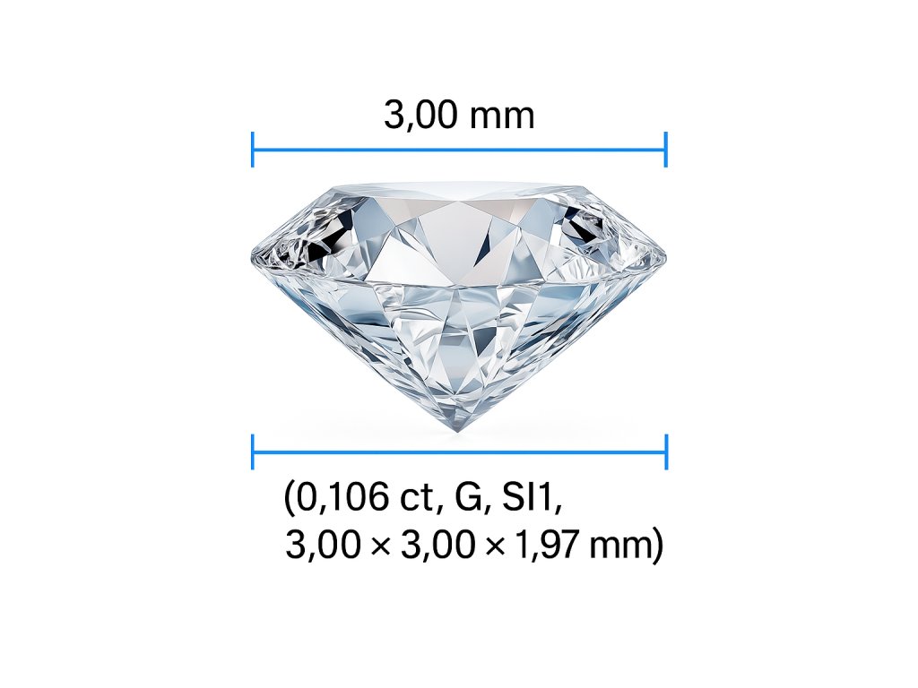 Tento přírodní diamant o průměru 3 mm a váze 0,106 ct je ideální volbou pro výrobu zásnubních prstenů, náušnic i luxusních přívěsků.