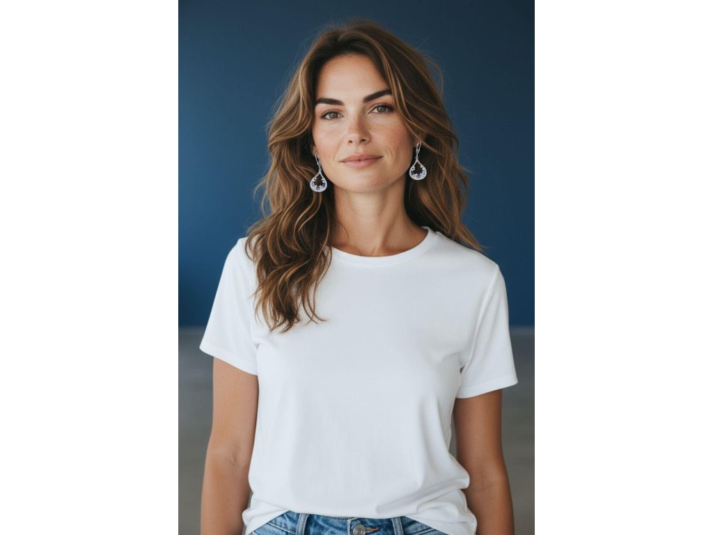 Pohyblivá ozdoba se při nošení krásně houpe a nechá vyniknout barvám i preciznímu brusu. Rhodiovaný povrch dodává lesk ve stylu bílého zlata a chrání stříbro před zčernáním.