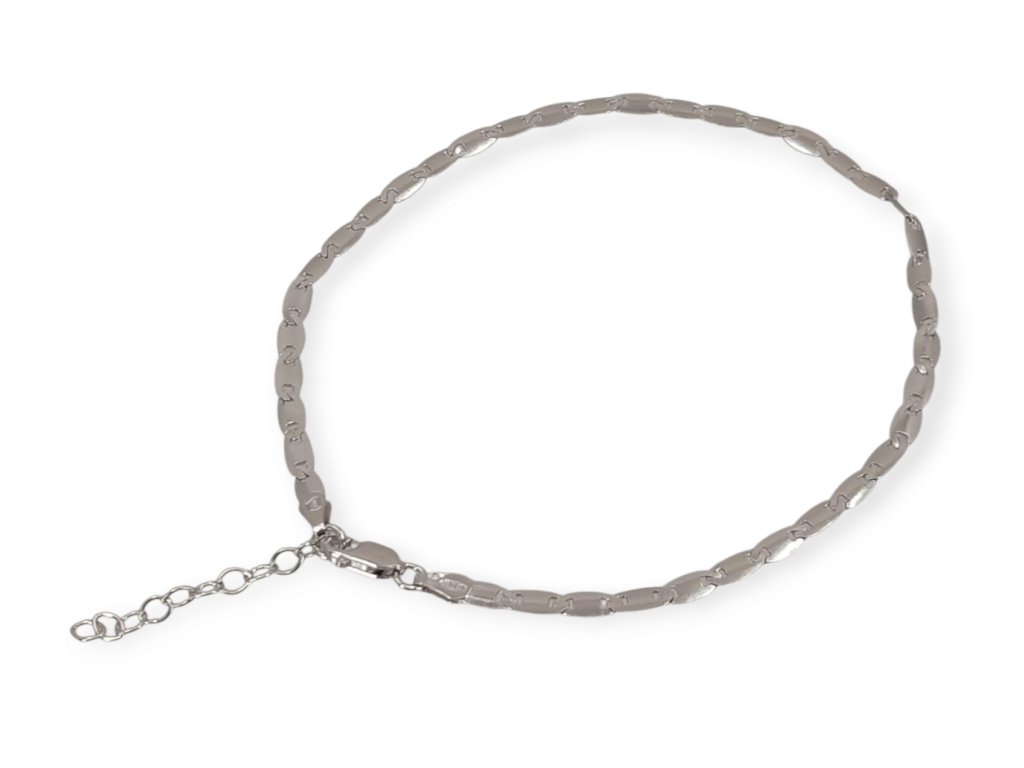 Stříbrný nákotník Destička – jemný dámský řetízek na nohu, rhodiovaný, 28 cm Destičkové řazení, rhodiované stříbro, nastavitelná délka 28 cm