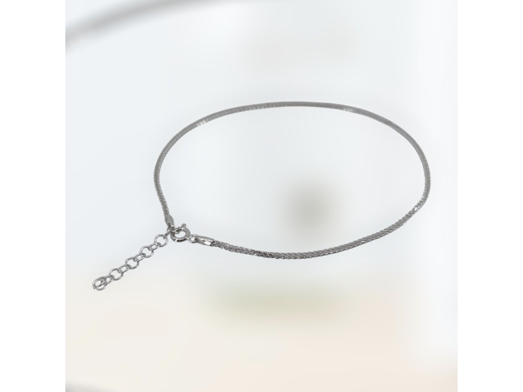 Stříbrný nákotník s hustou řetízkovou vazbou – jemný a pevný šperk na nohu Ag 925/1000, rhodiovaný Jemný stříbrný šperk s 3D řetízkovou vazbou