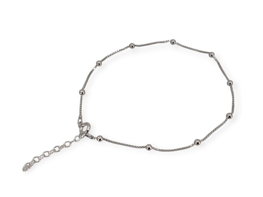 Elegantní stříbrný nákotník s kuličkami, délka 24 + 3 cm, rhodiovaný povrch, dodáváno v dárkové krabičce zdarma.