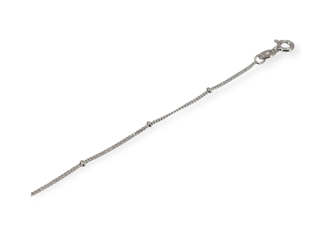 Stříbrný nákotník s kuličkami – jemný ankr řetízek, rhodiovaný, 23+3 cm Jemné kuličky, rhodiovaný ankr řetízek, nastavitelná délka