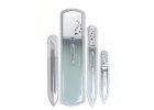 Skleněný pilníček Bohemia Crystal s oboustrannou brusnou plochou a stříbrným pouzdrem. Perfektní na cesty i každodenní péči.